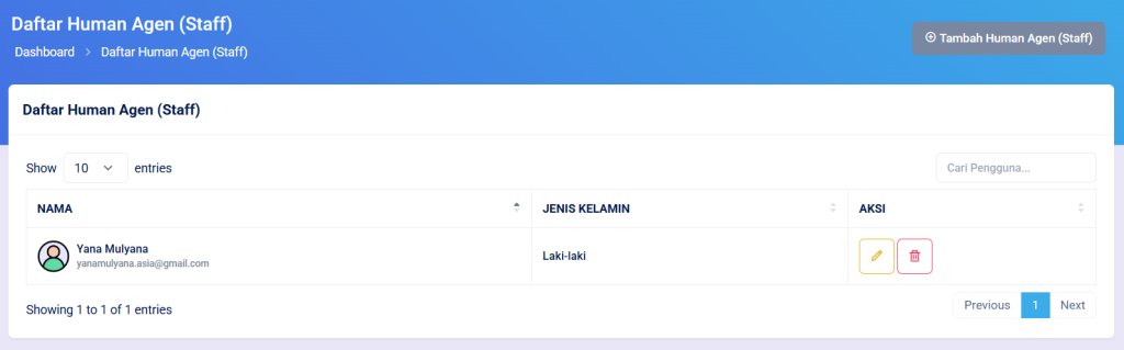 Kemudian klik button Tambah Human Agent.
