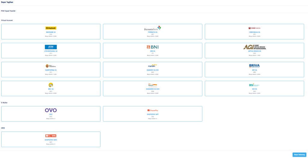 Pilih metode pembayaran, kemudian klik button Bayar Sekarang.